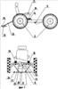 Присоски работают таким образом. Когда колесо 2 вступает в контакт со ступенькой, то очередная пластина 10 прижимается массой коляски к ступеньке и устанавливается параллельно поверхности ступеньки, а к элементу 9 – под прямым углом или под углом, близким к прямому. При этом из присоски 11 выдавливается воздух, и отверстия 28 на пластинке 10 закрываются клапанами 27. Возникающий при этом вакуум в присосках 11 удерживает колеса 2 на ступеньках лестницы. При дальнейшем качении колеса 2 угол между пластиной 10 и ее клиновидным элементом 9 делается настолько отличным от прямого, что один из клапанов 27 выходит из соответствующего отверстия 28. Это отверстие открывается и вакуум исчезает.