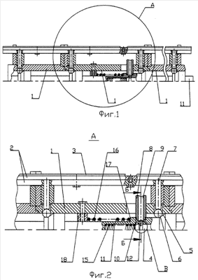 На фиг.1 представлена хонинговальная головка, общий вид; на фиг.2 – место А фиг.1; на фиг.3 – разрез Б-Б фиг.2; на фиг.4 – место В фиг.2.