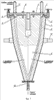 Поставленная цель достигается тем, что устройство для формования керамических изделий из водных шликеров, содержащее водопоглощающую матрицу (форму), пассивный сердечник или знак, узлы для их взаимной установки, подачи и подпитки шликера, отличается тем, что сердечник (знак) выполнен конусным с возможностью свободного перемещения в сторону большего диаметра сердечника (знака).