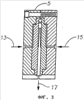 Более того увеличение числа слоев до 256 в значительной степени улучшает общий баланс механических и барьерных свойств. Это может быть достигнуто конструированием подающего блока таким образом, чтобы можно было изготавливать совместно экструдированные структуры с 256 чередующимися слоями. Принципиальная схема конструкции подающего блока, применяемого для изготовления этой структуры, представлена на фиг.2 и 3. Так, в частности, на фиг.2 показан вид спереди подающего блока 5 с поступающим потоком 11 и выходящим потоком 9. На фиг.3 показан вид сбоку подающего блока 5 с первым поступающим потоком 13 и вторым поступающим потоком 15 совместно с выходящим потоком 17. Все слои оказываются довольно однородными и параллельными.