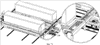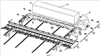Помимо этого верхняя сторона рамы вблизи поворотных тележек может использоваться для временного помещения на нее консолей или салазок надвигающего устройства для поддона, выполненного в данном случае в виде сменного поддона или короба с рогами, соответственно для обеспечения направленного перемещения каретки; для этого предусмотрены соответствующие усиливающие элементы и опорные поверхности скольжения. Очевидно, что салазки можно также выполнить настолько стабильными и прочными, чтобы исключить необходимость их опоры на концевую раму.