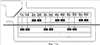 На фиг.9 показана перегрузочная площадка грузоперевалочного терминала с двумя разными – нормальной и широкой – рельсовыми колеями на одном рельсовом пути, в данном случае с Y-образными шпалами (четырехрельсовый путь). На показанной на чертеже в аксонометрии перегрузочной площадке грузоперевалочного терминала каждыми двумя расположенными на платформах по обе стороны от рельсового пути погрузочно-разгрузочными устройствами используется лишь по одной общей каретке. В данном варианте перегрузка грузов осуществляется аналогично перегрузке грузов, рассмотренной выше со ссылкой на фиг.7а-7м.