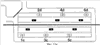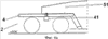 Сменный поддон 5 выполнен в виде стандартного поддона и предназначен преимущественно для размещения на нем полуприцепов или обычных, предназначенных для передвижения по улицам и дорогам автомобилей и прицепов, составляющих автопоезда. Сам сменный поддон представляет собой самонесущую, выполненную из продольных балок конструкцию коробчатого типа, в нижней части которого расположено корытообразное дно из листовой стали. Расположенные по концам конструкции из продольных балок рога 51 предназначены для более подробно описанного ниже захвата расположенными на грузоперевалочном терминале погрузочно-разгрузочными устройствами. На чертеже не показана система закрепления груза, т.е. закрепления сцепного шкворня полуприцепа, соответственно его колес. Закрепление груза на сменном поддоне обеспечивается опорными балками или регулируемыми по высоте опорными стойками, а также подкладываемыми под колеса противооткатными упорами. Необходимо также особо отметить, что изготовленное из листовой стали дно сменного поддона имеет в поперечном сечении, как это наиболее наглядно показано на фиг.1, профиль с приподнятой частью 54 и двумя расположенными по бокам от нее колеями 55. Благодаря такому профилю дна сменного поддона обеспечивается направленное движение колес грузового автомобиля, соответственно полуприцепов по колеям. Помимо этого пространство под приподнятой частью 54 подобного дна используется, как показано далее на фиг.1, для размещения в нем соединительной рамы 3. Эта соединительная рама 3 не предназначена для восприятия нагрузки от перевозимого груза, а служит лишь для механического соединения концевых рам 4 и для прокладки электрических кабелей или пневмолиний, соответственно гидролиний от одного вагона 1 к другому. На концевых рамах предусмотрены фиксирующие устройства 43, которые взаимодействуют с соответствующими ответными частями 59 на сменном поддоне 5 и таким путем с обеспечением достаточной для движения в составе поезда жесткости на изгиб фиксируют поддон относительно рамы.