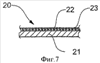 На фиг.7 показано устройство несущей ленты. Амортизирующий слой 22, например, из фетра или пенопласта и наружный термостойкий слой 23 располагаются на материале основы 21, которая воспринимает главные силы натяжения. В соответствии с предпочтительным вариантом осуществления настоящего изобретения термостойкий слой 23 состоит из Тефлона, что предотвращает прилипание конвейерного потока к конвейерной ленте.