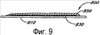 фиг.10 схематически иллюстрирует корпусную структуру, в которой поверх временного слоя осаждена тонкая пленка;