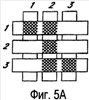 Чтобы установить строку 2 в желаемое состояние, для столбца 2 устанавливают напряжение -5 вольт, а для столбцов 1 и 3 устанавливают напряжение +5 вольт. Такой же строб-импульс, прикладываемый затем к строке 2, возбудит пиксель (2,2) и снимет возбуждение с пикселей (2,1) и (2,3). И опять, ни на никакие другие пиксели матрицы влияние не оказывается. Установку строки 3 осуществляют точно так же, устанавливая для столбцов 2 и 3 напряжение -5 вольт, а для столбца 1 – напряжение +5 вольт. Строб-импульс строки 3 устанавливает пиксели строки 3 так, как показано на фиг.5А. После записи кадра потенциалы строк становятся нулевыми, а потенциалы столбцов могут остаться на любом из уровней +5 или -5 вольт, после чего дисплей оказывается устойчивым в компоновке согласно фиг.5А. Следует понимать, что ту же процедуру можно применить для матриц, содержащих дюжины или сотни строк и столбцов. Следует также понимать, что синхронизацию, последовательность приложения и уровни напряжений, используемых для осуществления возбуждения строк и столбцов, можно изменять в широких пределах в рамках вышеизложенных общих принципов, а вышеописанный пример является лишь иллюстративным, и вместе с настоящим изобретением можно использовать любой способ приложения напряжений возбуждения.