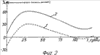 Биологическая активность полученных предлагаемым способом биокомпостов и по прототипу оценивалась после внесения их в почву из расчета 10 т/га по относительному (в %) приросту биомассы выращиваемых на этих почвах растений по сравнению с растениями, выращенными на контрольных почвах. Для этого заготовлялись три грунта – контрольный и два с внесением биокомпостов, полученных предлагаемым способом и прототипом (комплекс «Байкал ЭМ») с расходом 2 л на 1 т исходной массы ППП, и на периодически отбираемых (с интервалом в 10 дней в течение 4-х месяцев) образцах грунтов высевали по 50 семян тест-культуры (ячмень сорта «Гонар»). Средние биомассы растений по каждому посеву определяли по средней массе корней и стеблей из числа нормально взошедших десятисуточных растений в каждом опыте. Относительный прирост биомассы растений определяли по отношению разности средних масс опытных и контрольных к средним массам растений в контрольных посевах. Результаты биологической активности почв после внесения биокомпостов (полученного и известного) приведены на графиках (фиг.2), где кривая 1 соответствует применению биокомпоста прототипа, а кривая 2 – применению биокомпоста, полученного предлагаемым способом (на графиках относительные приросты биомасс растений в опытах условно отнесены к моментам посева их семян). Из представленных графиков видно, что биологическая активность биокомпоста, полученного предлагаемым способом, примерно на 30% выше, чем у прототипа, и не имеет периодов отрицательной биологической активности во времени, присущих прототипу.