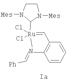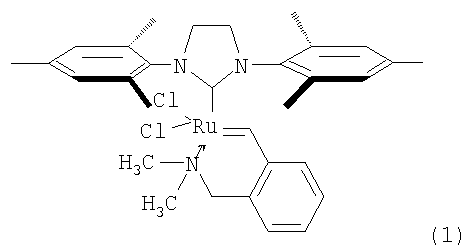 Объектом изобретения является также способ получения катализатора (Н), заключающийся в том, что катализатор Граббса II (второго поколения) подвергают взаимодействию с 2-(N,N-диметиламинометил) стиролом в толуоле при нагревании.