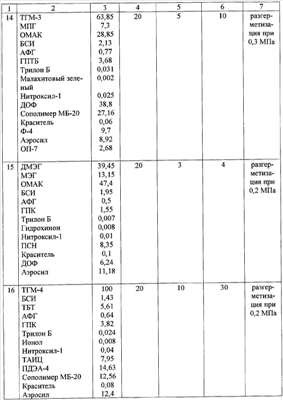 На 100 мас.ч. указанной мономерной смеси композиция по примерам содержит, мас.ч.: