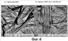 Фиг.3 показывает в сделанные 6-кратном увеличении микрофотографии отлитых вручную DSF-листов, применяющихся как вспомогательный слой, при разном уровне MPC-частиц: 0, 1,4 и 2,8 ф/1000 фут2.
