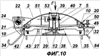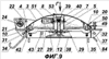 В торце каждой направляющей 10 с ее нижней стороны выполнено резьбовое отверстие, в котором расположен регулировочный винт 35, контактирующий с нижней криволинейной поверхностью 36 нижней ступени 30 рычага 27. Кривизна поверхности 36 может иметь переменный радиус в продольном направлении рычага 27.