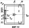 Кроме вышеперечисленных элементов и связей между ними, которые являются общими признаками с признаками предыдущих вариантов люка, четвертый его вариант имеет от предыдущих вариантов следующие существенные отличия. Комингс 1 и крышка 3 выполнены на виде сверху квадратными (фиг.13, 14), на диагональных осях которых расположены направляющие 10, тяги 11 и пиноли 13 (фиг.15).