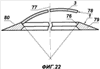 Пятый вариант люка отличается от других вариантов тем, что в его конструкцию введены талрепы или резьбовые втулки 73, посредством каждой из которых соединены резьбовые концы частей 74 и 75 каждой тяги 11. По сути каждая тяга 1 выполнена регулируемой по ее длине. Направляющая 10 каждой тяги закреплена на полой стойке, жестко закрепленной на внутренней стороне крышки люка. Каждая часть 74 тяги 11 пальцем 12 шарнирно соединена с пинолью 13, имеющей скошенную поверхность, взаимодействующую со скошенной поверхностью упора 72, жестко соединенного с комингсом 1. Кроме того, пятый вариант люка на виде сверху имеет круглую крышку, кронштейны 22 которой на указанном виде изогнуты к центру люка (фиг.21). При этом комингс в его поперечном сечении имеет наклонную к центру люка замкнутую по периметру плоскую поверхность 76 (фиг.22), расположенную в плоскости конуса, вершина которого расположена на вертикальной центральной оси 77 люка. Соответственно такому расположению наклонной плоской поверхности 76 расположена торцовая замкнутая поверхность 78 крышки 3 люка, плотно прилегающая к поверхности 76 комингса в рабочем положении люка.