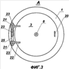 Кроме того, в пятом варианте люка благодаря тому, что направляющие 10 закреплены на полых стойках 85 (фиг.20), жестко прикрепленных к крышке 3 с нижней ее стороны, удалось разместить тяги 11 на значительном удалении от крышки 3, которая в данном варианте люка имеет в сечении полусферическую форму. Внутри полусферы крышки удалось расположить механизм перемещения пинолей 13 таким образом, что он весь расположен в контуре обечайки 33 за исключением штурвала 38. Это обеспечило возможность выбора такой кривизны полусферы крышки, которая в максимальной мере отвечает условию ее сопротивляемости внешним нагрузкам. При этом, с другой стороны, указанная форма выполнения крышки в совокупности с признаками компоновочного решения люка пятого варианта позволила минимизировать металлоемкость люка при относительной простоте ее конструкции.