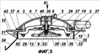 На крышке 3 (фиг.15) с нижней ее стороны закреплены направляющие 10, в которых подвижно установлены тяги 11, каждая из которых шарнирно связана с ползуном 6 пальцем 12. В каждой направляющей 10 установлена подвижно пиноль 13, которая шарнирно связана со смежной тягой 10. Эта шарнирная связь выполнена посредством другого пальца 12.