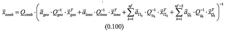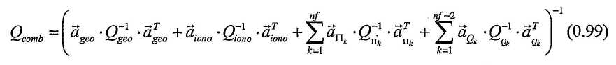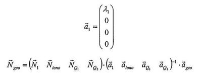 9. Способ по любому из пп.1-8, в котором набор данных сигнала GNSS выводят из сигналов, принятых от передатчиков первой навигационной системы, способ дополнительно содержит обработку второго набора данных сигнала GNSS, выведенного из сигналов, имеющих, по меньшей мере, две несущих, и принятых от передатчиков второй навигационной системы посредством этапов, на которых f. применяют ко второму набору данных сигнала GNSS геометрический фильтр с использованием геометрической комбинации фаз несущих для получения массива оценок неоднозначности для геометрической комбинации фаз несущих и соответствующей статистической информации, g. применяют ко второму набору данных сигнала GNSS банк ионосферных фильтров с использованием ионосферной не зависящей от геометрии комбинации фаз несущих для получения массива оценок неоднозначности для ионосферной комбинации фаз несущих и соответствующей статистической информации, h. применяют ко второму набору данных сигнала GNSS, по меньшей мере, один банк фильтров квинтэссенции с использованием комбинации фаз несущих, не зависящей от геометрии, для получения массива оценок неоднозначности для комбинации фаз несущих и соответствующей статистической информации, i. применяют ко второму набору данных сигнала GNSS, по меньшей мере, один кодовый фильтр с использованием совокупности комбинаций кодов несущих, не зависящих от геометрии и не зависящих от ионосферы, для получения массива оценок неоднозначности для комбинаций кодов несущих и соответствующей статистической информации, и в котором на этапе d. дополнительно объединяют массивы, полученные на этапах f., g., h. и i., с массивами, полученными на этапах а., b., с. и d., для получения объединенного массива оценок неоднозначности для всех наблюдений фазы несущей и соответствующей статистической информации.