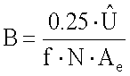 в котором В означает магнитный поток в теслах, означает пиковое возбуждающее напряжение в вольтах, f означает частоту в герцах и Ае означает полезную площадь поперечного сечения сердечника трансформатора в м2.