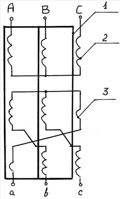 Отличительной особенностью предлагаемого трансформатора является отсутствие тока нулевой последовательности в каждой из обмоток при всевозможных режимах работы.
