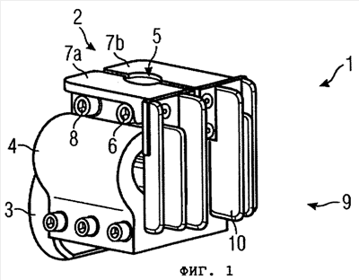 Фигура 4 – перспективный вид на нижнюю сторону соединительного устройства согласно Фигуре 1 без охлаждающего блока.