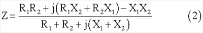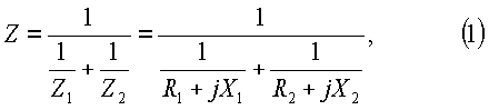 и может быть действительным, то есть импеданс Z может быть активным сопротивлением, если активная часть R1 и активная часть R2 равны, R1=R2, и если реактивная часть X1 противоположна реактивной части Х2, т.е. X1=-Х2. Когда импеданс Z является чисто резистивным, значения параллельно включенных импедансов Z1, Z2 являются комплексно сопряженными, то есть Z1=R1+jX1, .