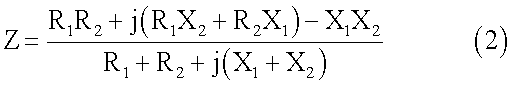 Комплементарные реактивные сопротивления блоков регулируемого импеданса, о которых шла речь в связи с описанием фиг.2А, 2В, 2С и 3, могут быть выражены математически с использованием комплексных чисел, так что импеданс является комплексным значением, причем его действительная часть представляет собой активное сопротивление, а мнимая часть – реактивное сопротивление. Реактивное сопротивление, в свою очередь, обусловлено индуктивностью или емкостью. Импеданс Z параллельного соединения двух блоков с импедансами Z1=R1+jX1 и Z2=R2+jX2 может быть выражен как