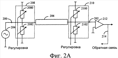 На фиг.2В показан пример, в котором согласующий компонент представляет собой направленный ответвитель 250 с четырьмя выводами 252-258. В этом примере к двум выводом 252, 254 подключены блоки 260, 262 регулируемого активного сопротивления, но в общем случае, по меньшей мере, один вывод связан с блоком регулируемого активного сопротивления.