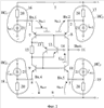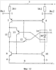 Схема фиг.11 является модификацией схемы фиг.10, в которой на входы 1 и 2 подается сигнал с выходов эмиттерных повторителей на транзисторах 22.1 и 22.2.