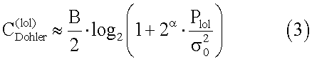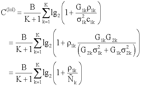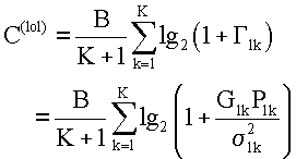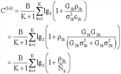 где В – общая ширина полосы частот, К – число ретрансляторов, Plol – мощность ограничения, – коэффициент затухания, – мощность шума. Пропускная способность для схемы Dohler может быть выражена следующим образом:
