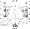 На фиг.14 – сечение Е-Е на фиг.13, фиксация нижних шатунов в кронштейнах продольных балок центральной рамы при выполнении технологического процесса.