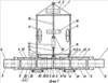 Секции 2 рабочих органов размещены своими поперечными брусьями 36 и продольными плитами 34 внутри рам 3, 4, 5, 6 и 7 и сопряжены с каждым из них посредством осей 42. Оси 42 на боковых гранях поперечных брусьев 39 зафиксированы планками 43 и средствами крепления от осевых перемещений.