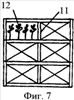 – выполнение контейнера сборно-разборным позволяет приспосабливать его конструкцию к условиям работы, в частности можно, например, удалить один ряд кассет по высоте и сделать его двухрядным, и для примера на фиг.6 показан схематично вариант верхнего каркаса контейнера с вертикальными стойками, которыми он устанавливается и закрепляется на предыдущем каркасе,