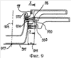 Кроме того, на фиг.7 показан контур конца ручки 93 крышки 95, имеющий вид повернутого книзу выступа 91. Выступ 91 вставляется в паз 33 верхней поверхности ручки и таким образом объединяет переднюю и заднюю стенку второго выступа 83.