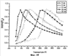 Зависимость намагничивания от температуры измеряли после охлаждения при нулевом магнитном поле (ОНП), используя 100 Ое в температурном интервале 5-380 К, для сферических наночастиц оксида железа диаметром 5, 9, 12, 16 и 22 нм, синтезированных в соответствии с вариантами осуществления 2, 3, 4, 5 и 6, используя сверхпроводящий квантовый интерференционный датчик (СКВИД).