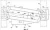 Внешнее портальное устройство 8 спроектировано соответственно. Оно включает две монтажные детали, которые формируют башни 82, 83, на которых портальное несущее приспособление 81 крепится так, чтобы быть подвижным и регулируемым в направлении по высоте Z. Портальное несущее приспособление 81 сформировано внутренней продольной секцией 811, которая образует внешнее несущее направляющее приспособление 22, так же, как и калибровочными участками 812, 813 на концах. Центральная продольная секция 811 крепится с возможностью вращения к концевым секциям 812, 813 на продольной оси вращения 502 посредством вращательной концевой опоры 84. Портальные устройства 7, 8 имеют возможность раздельного перемещения в направлении по оси Y на рельсах 15 или 16.