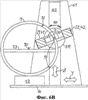 Опорное устройство рамы 51 включает пару вращательно-кольцевых опор 511. Каждая опора 511 регулируется по высоте и имеет стопорный механизм на соответствующей башне/опоре 61, 62 в вертикальном пазу 63 в направлении по оси Z. Чтобы поддерживать раму несущего приспособления 4 с концевыми деталями 43, 44, две вращательно-кольцевых опоры 511 перемещаются в направлении Z-(высота) и направлении оси Y в соответствующие положения. В каждом Y, Z-положении рама 4 имеет возможность вращаться вокруг своей центральной продольной оси 40, которая совпадает с осью вращения 500 опорного устройства 51. Соответственно, внутреннее несущее направляющее приспособление для инструмента 21, 41 и внешнее несущее направляющее приспособление инструмента 22, 42 вращательно удерживается на одной и той же продольной оси вращения 500. Вращая раму 4 вокруг оси вращения 500, противодействующие суппорты 310, 320, которые выровнены друг относительно друга, или инструменты 31, 32, которые находятся друг напротив друга, как пара 3, могут перемещаться единственным вращательным регулирующим движением в любое желательное угловое положение. В комбинации со взаимной подвижностью башен 61, 62 установки 6 по оси Y, так же, как и взаимной приспосабливаемостью высоты вращательно-кольцевых опор 511 по оси Z, рама 4 может быть перемещена в любое желательное положение по высоте или окружности на кожухе фюзеляжа 91, как это, в частности, показано на Фиг.6А – 6С, на которых вращательным регулированием рамы 4 в направлении R1 суппорты 310, 320 или инструменты 31, 32 могут быть установлены в рабочем направлении, которое перпендикулярно изготавливаемой поверхности фюзеляжа 9. Это расположение достигается независимыми регулировками в направлении по оси Y, направлении по оси Z и в направлении R1. В устройстве 1 два возвратно-поступательных перемещения, так же, как и вращающее перемещение, выполняются автоматически согласно размеру и форме фюзеляжа 9, а также согласно положению по окружности накладываемого заклепочного шва. В каждом из рабочих положений набора инструментов башни 61, 62 или опоры 511 останавливают с помощью обычных средств (не показано).