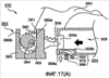 И если плечо 360 рычага поворачивают дальше в направлении против часовой стрелки, то выводящий из контакта элемент (не показан) толкает контактный элемент 355 вниз под действием силы отвода, которая прикладывается контактной пружиной 366. Соответственно, контакт между контактными частями 308а картриджа и контактным элементом 355 прекращается, вследствие чего можно вынуть картридж 308 с чернилами.