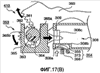 Как показано на фиг. 17В, когда пятое зубчатое колесо 361 поворачивается по часовой стрелке за счет поворота плеча 360 рычага, шестое зубчатое колесо 362 поворачивается на 180° против часовой стрелки. Поскольку кулачковый вал 363 поворачивается синхронно с шестым зубчатым колесом 362, кулачковые детали 364 поворачиваются на 180°. Кулачковые детали 364 упираются в первую часть 365а стенки в блоке 365 с проточными каналами и принудительно перемещают эту часть, что приводит к движению блока 365 с проточными каналами вправо на чертеже. В этот момент времени иглы 309 для подачи чернил, выполненные в блоке 365 с проточными каналами, вставляются в отверстия 308с для вставления игл, выполненные в картридже 308 с чернилами, что приводит к состоянию завершения загрузки картриджа с чернилами.