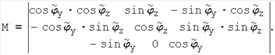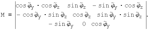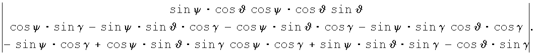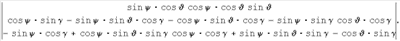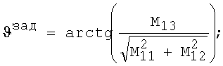 где М11, М12, M13, М23, М33 – элементы матрицы М направляющих косинусов от географического координатного трехгранника OENH к требуемому положению связанного с ЛА трехгранника Oxyz, которые, в свою очередь, отыщутся как:
