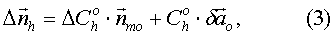 В соответствии с алгоритмом задачи преобразования сигналов акселерометров на навигационные оси ENH согласно выражению (2) вариации вектора кажущегося ускорения в осях географического сопровождающего трехгранника будут равны