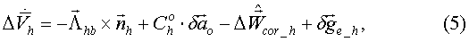 Из уравнения (5) следует, что погрешности БИИМ в выработке вектора линейной скорости ОУ в точке размещения блока акселерометров в проекциях на навигационные оси в условиях баллистической траектории при  0 будут зависеть также и от вектора погрешностей БИИМ в выработке параметров ориентации объекта.
