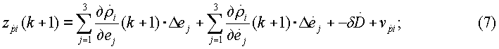 где  – расчетные текущие значения дальности и радиальной скорости до HCi, полученные по данным БИИМ и эфемеридной информации для НСi и приведенные к точке расположения антенны ПА СНС;  – их измеренные в ПА СНС значения.