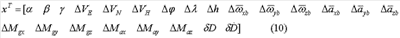 – вектор состояния системы, здесь , , – погрешности ( – по курсу, , – в моделировании вертикали места) задачи ориентации в построении географического трехгранника ENH (вычислении матрицы ориентации );