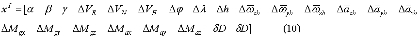 – ai – дрейфы нулей линейных акселерометров – марковские процессы первого порядка 1ai=0.03 м/с2, (µai=0.01 (с-1);