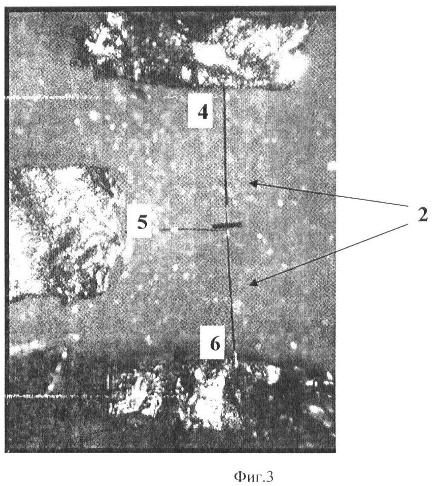 На фиг.3 представлена фотография трехконтактного актюатора. Подача напряжения между контактами 4-5 приводит к кручению верхней половины вискера 2. При этом модулируется сопротивление нижней половины (5-6) вискера 2. Т.о., верхняя половина вискера работает как актюатор, а нижняя – как приемник. Использование зеркала для регистрации кручения при этом не обязательно.