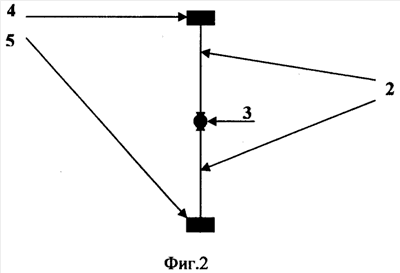 На фиг.2 представлена схема предлагаемого актюатора без использования проволоки. Два фрагмента одного вискера (2) склеены посередине проводящим клеем в точке (3), образуя контакт, подвешенный над подложкой. В одном из фрагментов направление цепочек повернуто на 180° по отношению к другому (показано стрелочками). При приложении напряжения между контактами (4-5) кручение обоих вискеров в области склейки направлено в одну и ту же сторону.