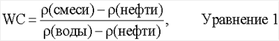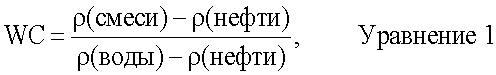 где (смеси) является плотностью жидкости, (нефти) является плотностью нефти в жидкости, и (воды) является плотностью воды в жидкости. Плотность нефти может быть введенной пользователем или измеренной отдельно. Уравнение 1 зависит от плотности воды в жидкости. Плотность воды может изменяться в зависимости от минерализации.
