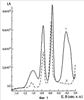 На фиг 3: кривая 1 – фоновый (сенсорный) электролит, представляющий собой смесь азотнокислых солей Zn, Cd, Fe, Сu в концентрации 5·10-5 М в 0,05 М КСl; кривая 2 – сенсорный электролит с добавкой криптопина (С=5·10-2 мг/мл), фиг.3а – векторный образ пробы криптопина.