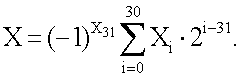 X0… X31 по порядку от младшего значащего разряда, МЗР (LSB), до старшего значащего разряда, СЗР (MSB). Под позициями отдельных битов указано, что означают позиции отдельных битов согласно 32-разрядному формату данных с фиксированной запятой. Из чертежа видно, что старший значащий разряд обозначает знак значения, то есть, “+” или “-“. Остальные биты X30 – X0 выражают величину значения. Согласно данному варианту осуществления изобретения, показанному на Фиг. 1, эти биты представляют правильное дробное число, то есть формат 10 данных является форматом данных в виде дробного числа с фиксированной запятой, в котором, по определению, точка или запятая расположена в крайнем левом положении, то есть слева перед битом X30. Следовательно, значение в регистре 10 может быть выражено следующим образом: