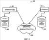 На Фиг.8, показана схематическая блок-схема примерной вычислительной среды 800 в соответствии с настоящим изобретением. Система 800 включает в себя одного или более клиентов 802. Клиент(ы) 802 могут быть аппаратными и/или программными (например, потоки, процессы, вычислительные устройства). Клиент(ы) 802 могут вмещать cookies (небольшие фрагменты данных о предыстории обращений пользователя к серверу) и/или соответствующую им контекстную информацию, например, используя настоящее изобретение. Система 800 также включает в себя один или более серверов 804. Сервер(ы) 804 могут также быть аппаратными и/или программными (например, потоки, процессы, вычислительные устройства). Серверы 804, например, могут вмещать потоки, чтобы производить преобразования посредством применения настоящего изобретения. Одна возможная связь между клиентом 802 и сервером 804 может быть в форме пакета данных, адаптированного для передачи между двумя или более компьютерными процессами. Пакет данных, например, может включать в себя cookies и/или ассоциированную контекстную информацию. Система 800 включает в себя инфраструктуру 806 связи (например, глобальную сеть связи типа Internet), которая может использоваться для обеспечения связи между клиентом(ами) 802 и сервером(ами) 804.