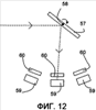 Пример выполнения датчика 1 люминесценции без дифракционного спектрометра показан на фиг.12. При этом на фиг.12 схематично показана лишь детекторная часть датчика люминесценции. Все другие компоненты, такие, например, как корпус, освещение и проекционная оптика, не показаны на чертеже для сохранения его наглядности. Согласно этому показанному на фиг.12 варианту исходящий от проверяемой банкноты BN луч выборочно отклоняется поворачиваемым вокруг оси 58 поворота отклоняющим зеркалом 57 на отдельные детекторы 59, чувствительные к излучению с разными длинами волн, соответственно к излучению в разных диапазонах длин волн. Эту выборочность можно обеспечить, во-первых, путем выбора детекторных поверхностей детекторов 59, фоточувствительных к излучению в разных диапазонах длин волн. Очевидно, что, как показано, например, на фиг.12, можно также устанавливать перед детекторами 59 и предпочтительно также крепить к ним самим светофильтры 60, рассчитанные на разные диапазоны длин волн.